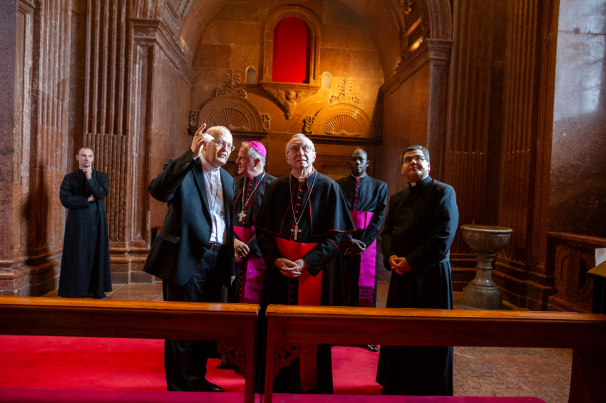Ezután Parolin bíboros először a szentély falait hintette meg a szenteltvízzel, majd végigvonult a templomhajóban középen egészen a kapuig, és meghintette az épületet.