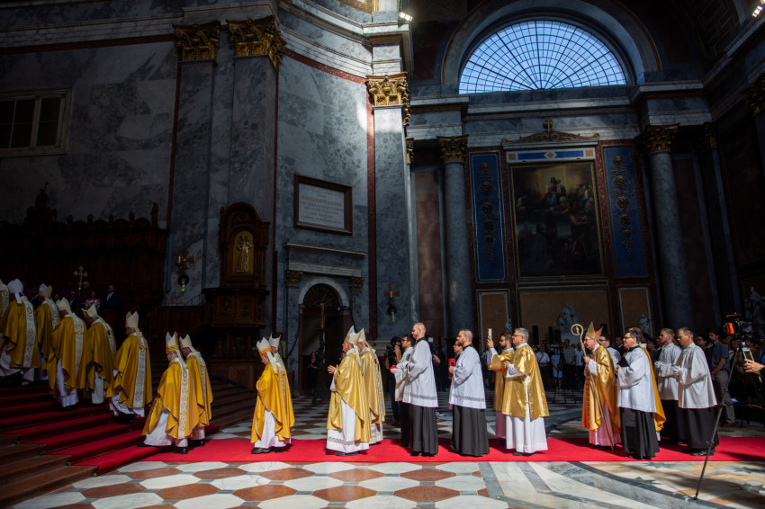 Szombat délelőtt megtelt a hatalmas esztergomi bazilika ünneplő tömeggel. A szentmise főcelebránsa és szónoka Pietro Parolin bíboros államtitkár volt.
