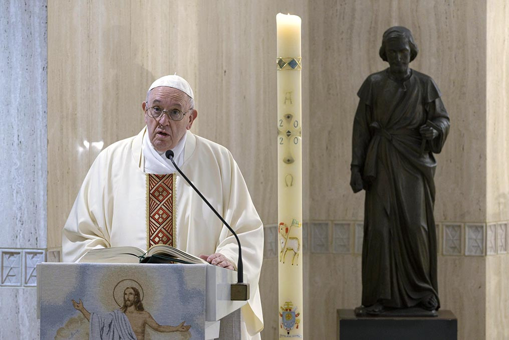 Hálát adok az Úrnak, hogy a péteri szolgálatomat kezdő szentmisét Szent Józsefnek, Szűz Mária hitvestársának és az egyetemes Egyház védőszentjének ünnepén mutathatom be. Igen jelentőségteljes egybeesés ez, egyben mélyen tisztelt elődöm névnapja is: szeretettel és hálával telve közel vagyunk hozzá imáinkban.