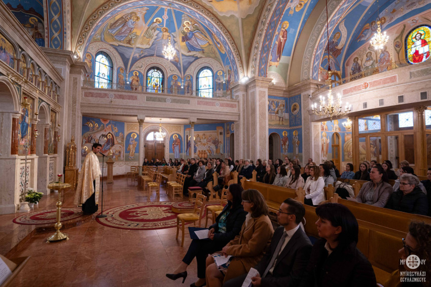 A szertartást vezette és elmélkedést tartott Kocsis Dániel, a székesegyház beosztott lelkésze. A templom falain megjelenő tanításokat vette sorra, és ezek közös szemlélése vezette az ő gondolatait is. A Nyíregyházi Egyházmegye püspöki székesegyházában mindenki otthon érezheti magát, megnyugvást találhat. A Jóisten épp ezt akarja szívünkbe vésni: a templomban jó helyen vagyunk, válaszokat és megnyugvást találhatunk a mindennapok nehézségei közepette – mondta.