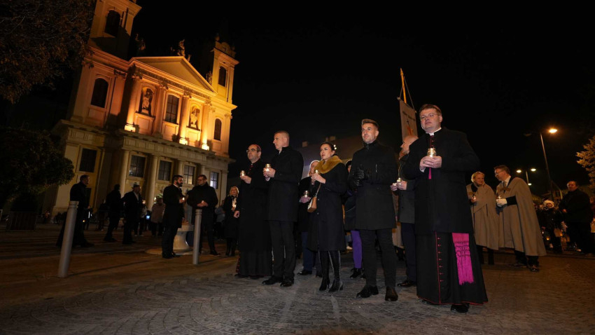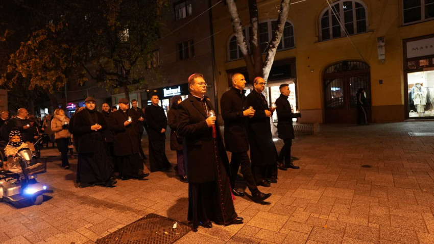 Az esti dicséretet követően a székesegyháztól a Szent Márton-templomig világító lámpásokkal vonultak a résztvevők.