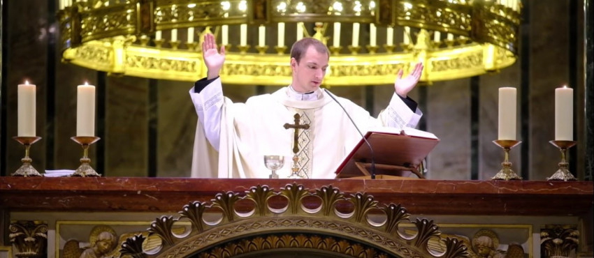 Az Eucharisztia ünneplésekor lelki áldozásra hívta a szentmisét otthonaikból követő híveket Lápossy Péter. „Jézusom! Hiszem, hogy jelen vagy a legméltóságosabb Oltáriszentségben. Mindennél jobban szeretlek és vágyom rá, hogy a lelkembe fogadhassalak. Mivel most nem tudlak szentségi módon magamhoz venni, jöjj, legalább lelki módon, a szívembe! Ne engedd, hogy elszakadjak Tőled! Ámen.”