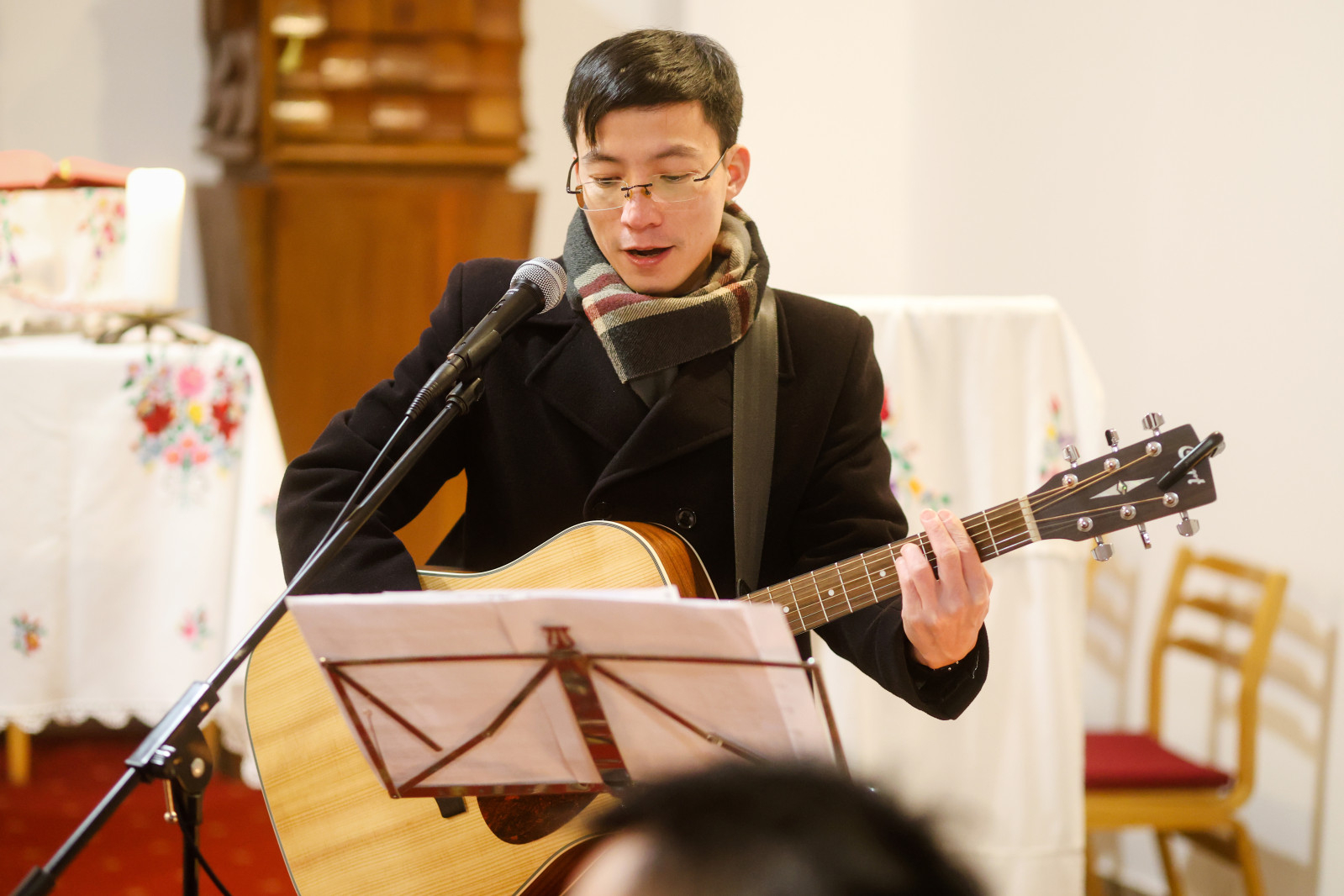 Nagyon gazdag a vietnámi püspöki konferencia által jóváhagyott liturgikus énekkincs, a népzenétől a modern zenéig sokféle stílusú ének megtalálható benne. Ezek közül jó néhány szintezitátor, gitár, dob kíséretében hangzott el az esti szentmisén. Az énekpróbát Tran Van Ngu József SJ atya vezette, aki, amióta Magyarországon van, besegít a közösség ünneplésébe.