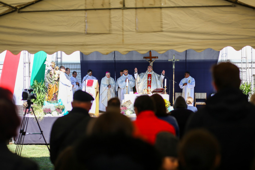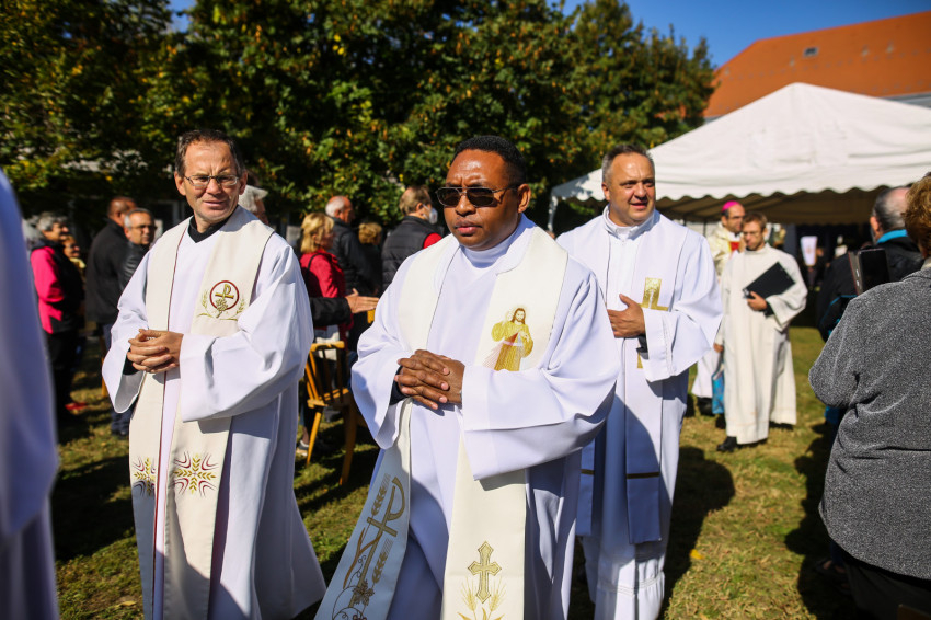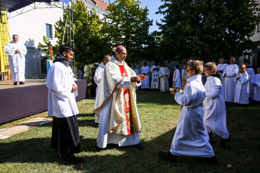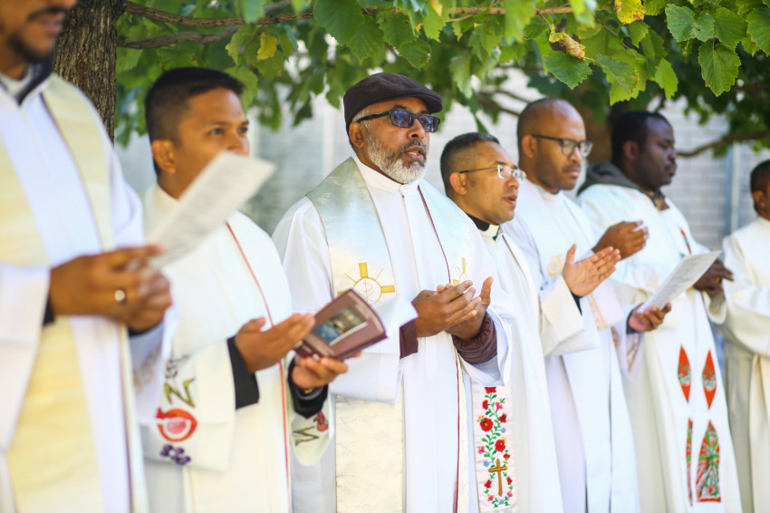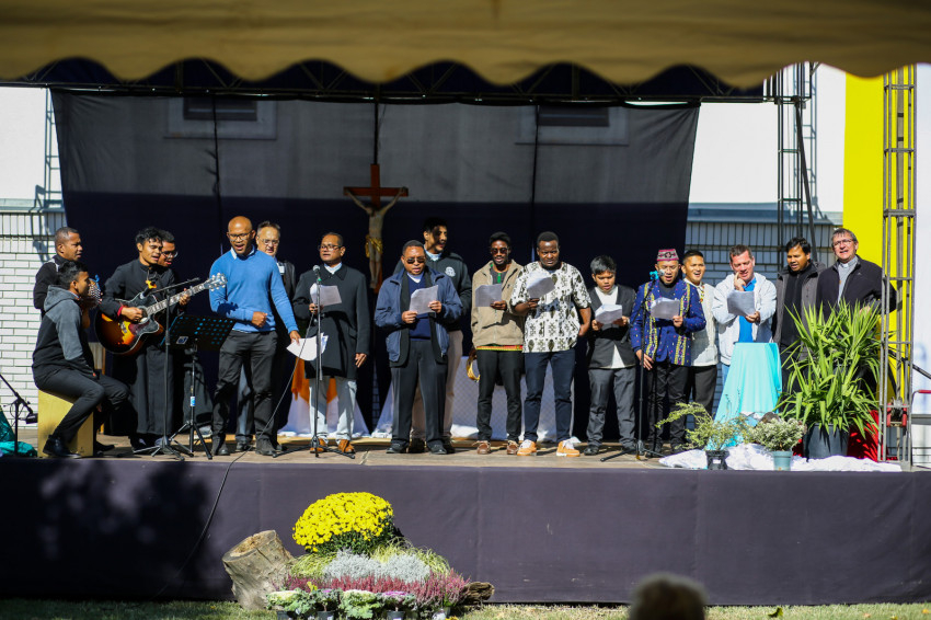 Az ünnepi liturgiára megtelt a missziósház udvara, a verbiták által minden földrész, a hívekkel pedig minden generáció képviseltette magát. Székely János bevezetőjében hangsúlyozta: