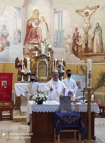 A közel 400 fős kis falu temploma megtelt hívőkkel a 11 órai szentmisén, melyet Horváth Gábor plébános mutatott be.