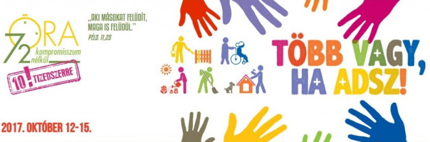 A „72 óra kompromisszum nélkül” önkéntes akciót tizedszerre rendezi meg a három történelmi keresztény egyház hazánkban. Az idén „Több vagy, ha adsz!” mottóval meghirdetett program Magyarország fiatalságát összefogásra hívja: tegyünk együtt másokért és környezetünkért. És miért kompromisszum nélkül? Mert a résztvevők a háromnapos önkénteskedés előtti nap kapják meg feladatukat.