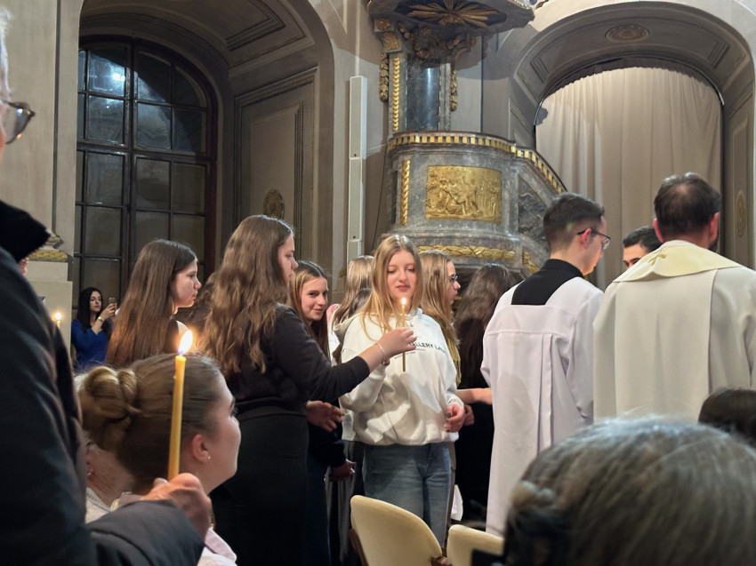 Az esemény keresztúttal kezdődött az intézmény udvarán, melyet Muhari Máté egyetemi lelkész vezetett.