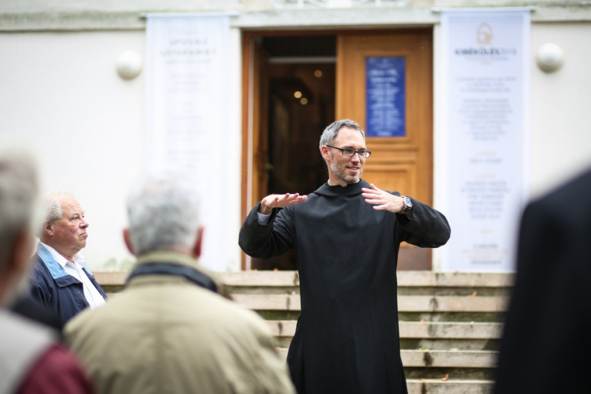 Anselm Grün előadására rövid beszélgetésben reflektálhattak a résztvevők kisebb csoportokra osztva, majd Dejcsics Konrád mutatta be a Kibékülés című kiállítást. A napközi imaóra és az ebéd után a délutáni előadást hallhatták, amelyet szintén feldolgozó beszélgetés követett.