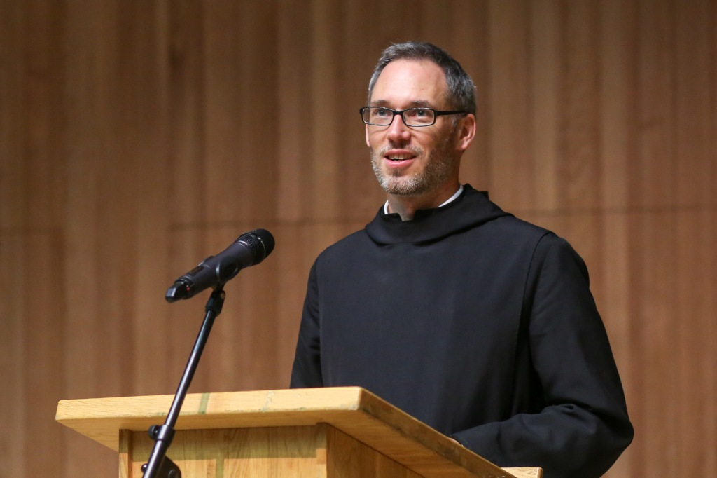 Anselm Grün köszöntötte a nap kedvéért sok esetben hosszú utat vállaló paptestvéreket. Lelkünk gondjairól beszélt, melyek fakadhatnak például a munkahelyünkből, az ott ránk nehezedő nyomásból; kapcsolatainkból; a közösségi médiából. A közösségi oldalak nyomását nagymértékben az önoptimalizálás tendenciája okozza, amely kimeríti énünket. Egy túloptimalizált önkép jön létre, amelyet kergetni kell... Daniel Hell pszichiáter szerint ez depresszióhoz vezet, nem tudjuk elfogadni önmagunkat, mert az önmagunkról alkotott ideál nem esik egybe valódi énünkkel. Van, aki arra panaszkodott a szerzetesnek: nem tud csendben lenni, mert amikor elhallgat, úgy érzi, egy vulkán tör föl benne – fél önmagától. A belső bíró szüntelenül vádol minket.