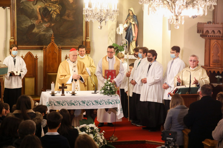 A legkisebbek virágcsokorral köszönték meg Erdő Péter bíborosnak, hogy hozzájuk látogatott.