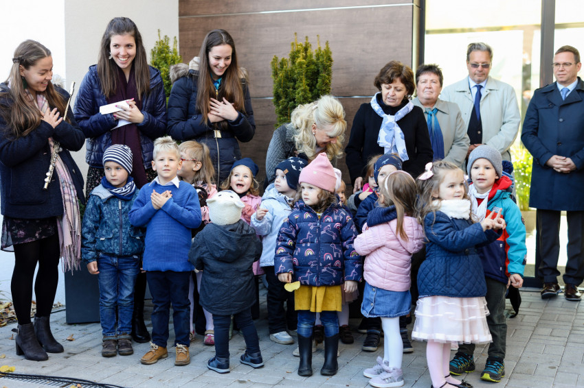 A szentmise után az ünneplő sokaság átvonult az új óvoda bejáratához. Dóra Zoltán köszöntése után a kis óvodások egy csoportja énekes műsort mutatott be.