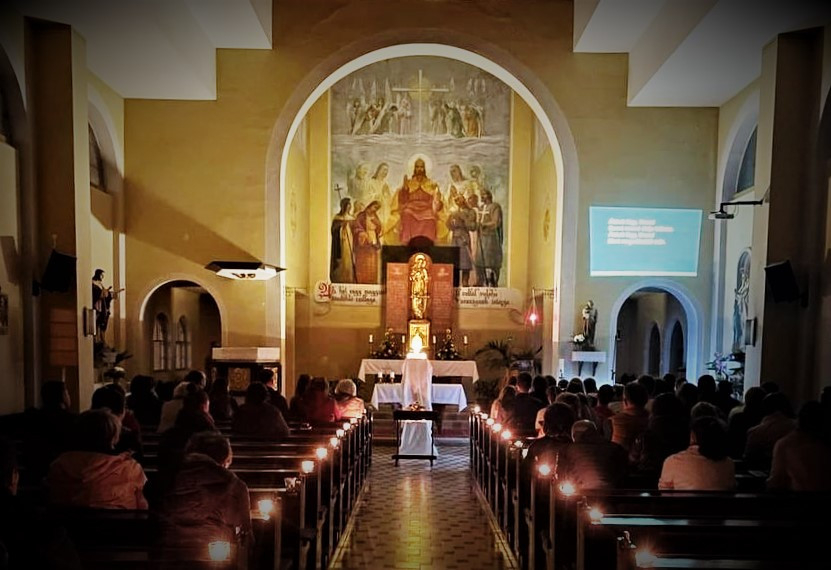 A misét egy egész éjszakán át tartó szentségimádás követte, amit Simon Dávid atya indított el mély gondolatokkal. Csodálatos dolog kettesben lenni Istennel, szüntelenül imádkozni, látni a többi hívő arcát, ahogyan végtelen nyugalom és boldogság járja át. Sok fiatal is részt vett a szentségimádáson, ami külön örömmel töltötte el szívemet: 15-20 éves fiatalok éjszakába nyúlva imádkoztak elmélyülten, csendben, áhítattal. Voltak, akik a másnap délelőtti szentmiséig a templomban maradtak, az egész éjjelt átimádkozva.