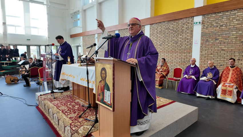 Michael Wallace Banach apostoli nuncius prédikációja elején átadta a közösségnek XIV. Leó pápa köszöntését és atyai áldását, és hangsúlyozta Isten állandó, hűséges szeretetét. Majd Jézus és az Atya különleges kapcsolatáról beszélt, amely egyszerre titokzatos és életformáló. Arra biztatta a diákokat, hogy nyitott szívvel hallgassák Jézus szavait, és ismerjék fel, hogy Isten szeretete mindig jelen van és válaszra hív minden embert. Szent Carlo Acutis életét követendő példaként állította a fiatalok elé.