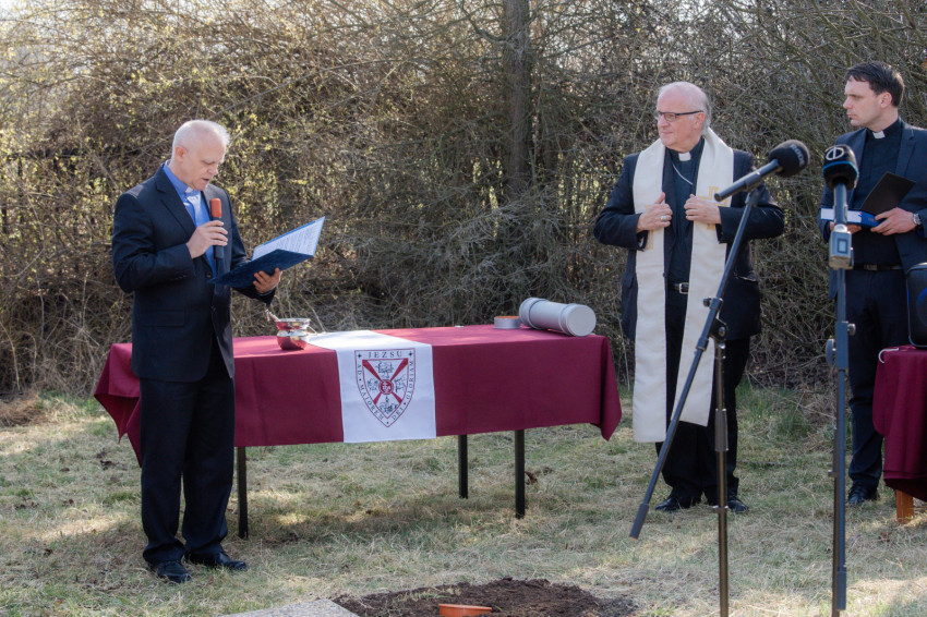 Holczinger Ferenc jezsuita igazgató köszöntője után a nuncius megáldotta az időkapszulát, melyben az iskola küldetésnyilatkozatát, az idei tanév tanárainak névsorát, az ignáci pedagógia összegzését, gyermekrajzokat és a közösségi tér látványtervét helyezték el.
