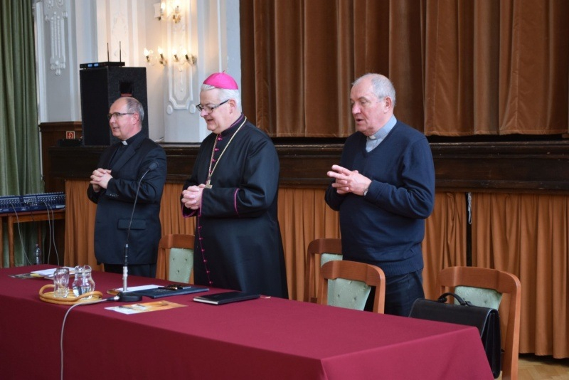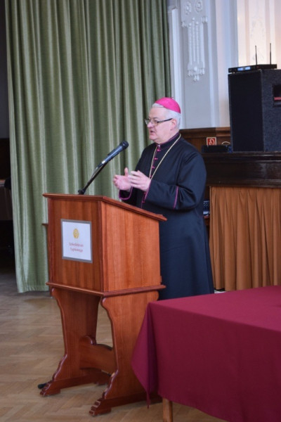 Ugrits Tamás püspöki irodaigazgató a hitoktató és a lelkipásztori munkatárs szolgálatának lelki dimenziójáról tartott elmélkedést. Elmondta, milyen kísértésekkel kell szembenézni és milyen kegyelmekre kell megnyílni ahhoz, hogy Krisztus-követő és egyházi, közösségi lelkülettel végezhessenek munkát a plébániai és iskolai közösségekben. Beszélt azokról a kísértésekről, amelyek elsősorban azt akarják elhitetni, az egyházi szolgálatnak nincs értelme, az emberek közömbösek, nem érdemes erőfeszítéseket tenni, mert nem változik semmi a családokban, illetve hogy Jézus ma nem aktuális, nem érdemes róla tanúságot tenni.