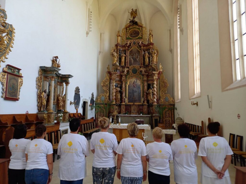 Ottlétünk minden napján közösen mondtuk a zsolozsmát, és szentmisén vettünk részt. Különös hangulata volt annak, hogy ki sem kellett tegyük a lábunkat a zarándokházból, hisz’ egy összekötő folyosón át rögtön a templomba jutottunk.