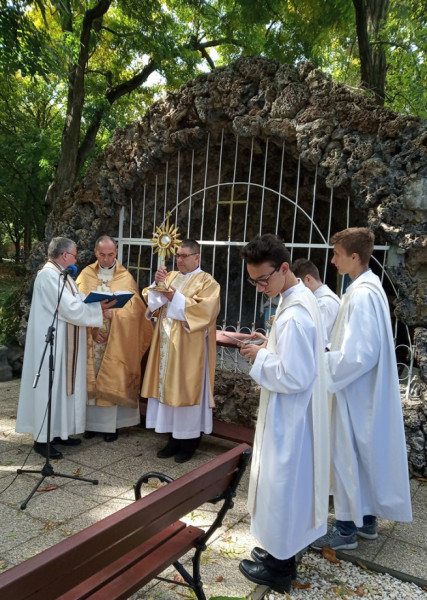 A szentmise végén körmenet tartottak, melynek során újra megáldották a Szathmáry Zoltán anyagi támogatásából felújított lourdes-i barlangot.