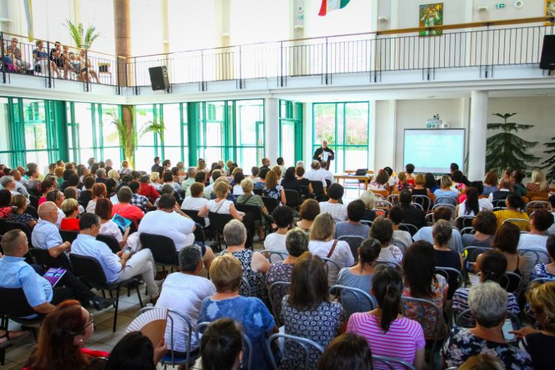A tanévkezdő lelkinapra több mint ötszáz pedagógus gyűlt össze a főegyházmegyei fenntartású katolikus köznevelési intézményeknől a kalocsai Nagyasszonyunk Katolikus Intézményben. A lelkinap előadója Hortobágyi Cirill pannonhalmi főapát volt, aki első előadásában az oktatás nehézségeiről beszélt. Hangsúlyozta, hogy megújuló pedagógiai módszerekkel kell a diákok felé fordulni. Megváltozott a tanulási környezet, a média, a fogyasztói társadalom és a felgyorsult idő rendkívüli hatással van a mostani tanulói generációra. A legnagyobb változás az információáramlás sebessége: ma egy napilapban több információval találkozik valaki, mint egy egész emberi élet során a 17. században. Ilyen környezetben tanít a pedagógus, akivel szemben irreális elvárásokat támaszt a kor. „A pedagógus olyan edző, aki a rendes és a paraolimpiai válogatott tagjait együtt készíti fel, egyszerre több versenyszámban, néha edzőpálya, síp és minden dopping nélkül, egy olyan klubban, ami veszteséges, és ahol egyáltalán nincsenek szurkolók” – fogalmazott Hortobágyi Cirill.