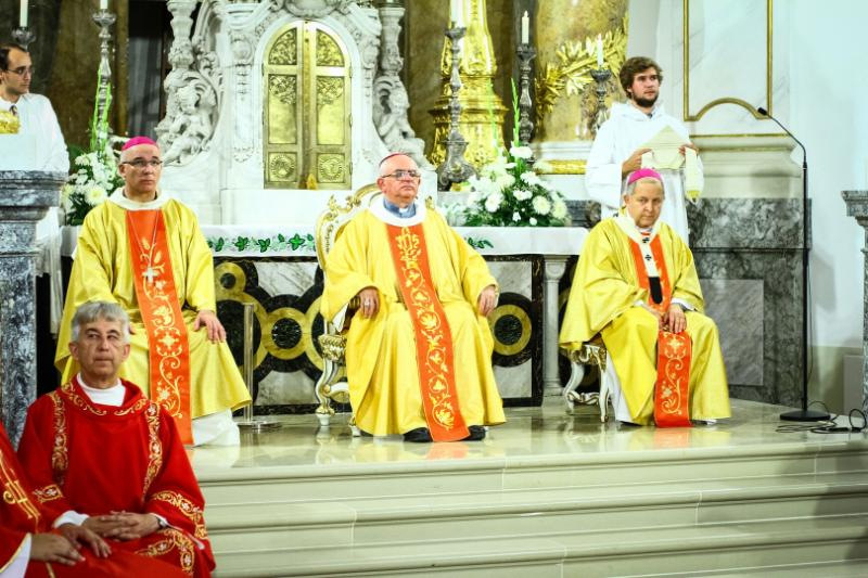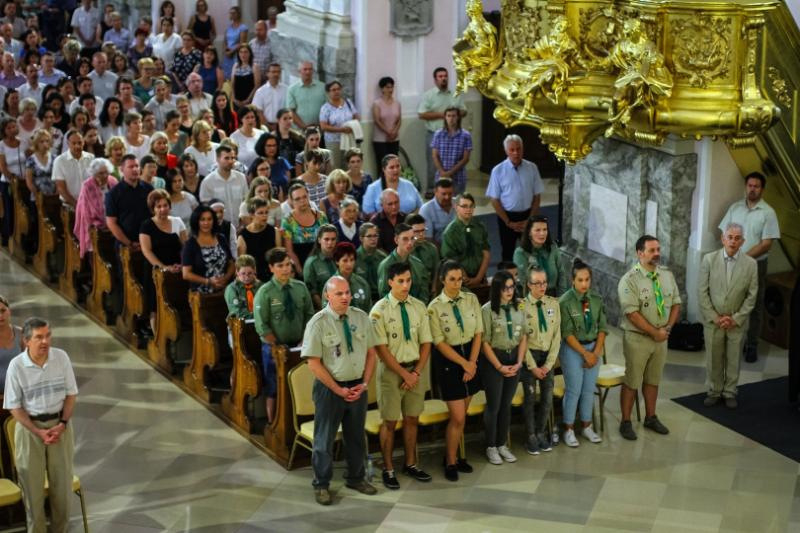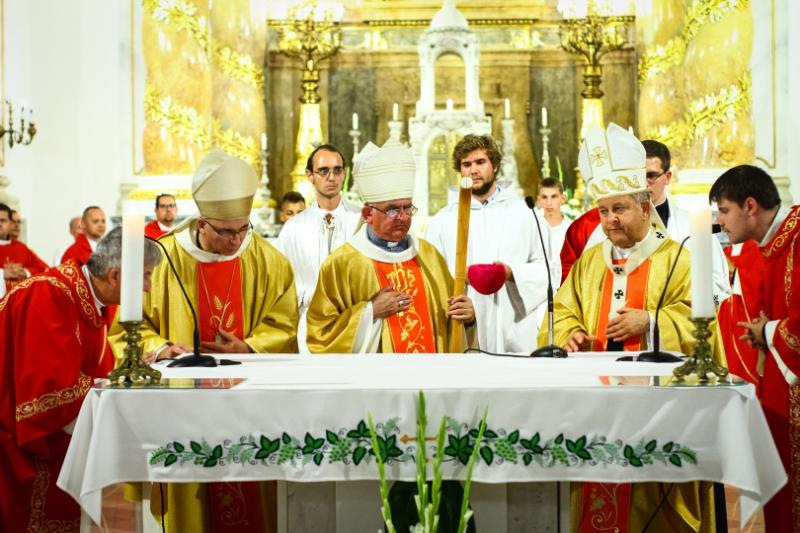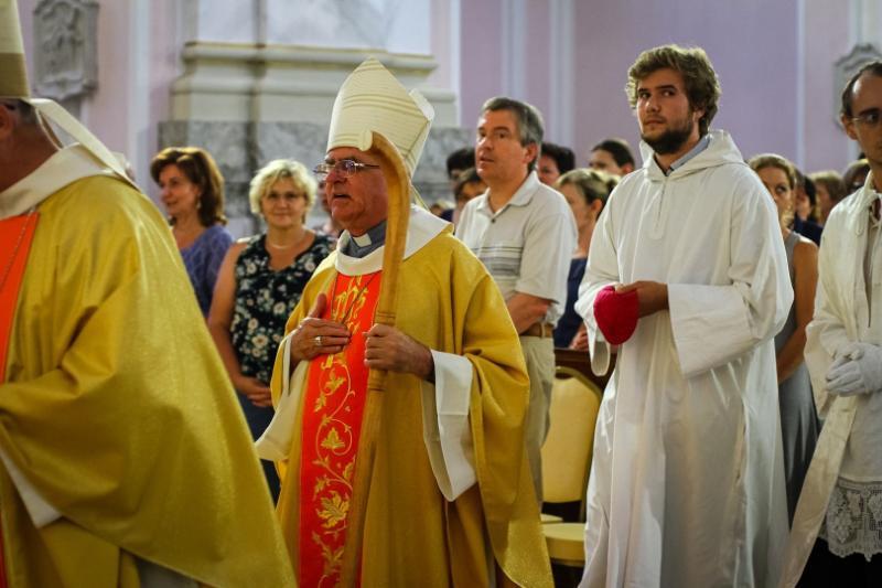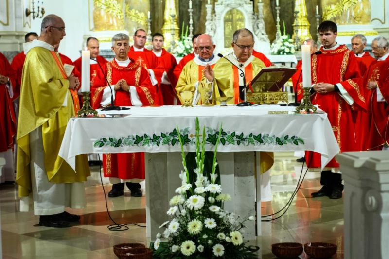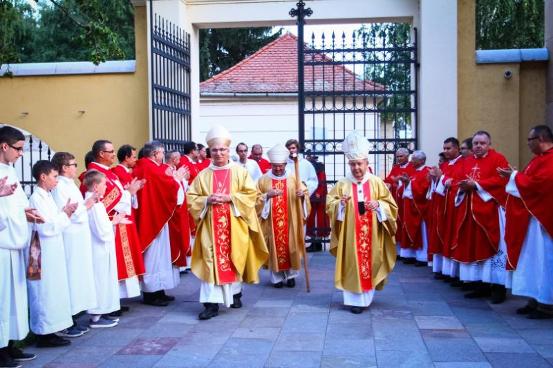 Bábel Balázs érsek beszédét követően a jelenlévők megkoszorúzták Tomori Pál érsek szobrát. A megemlékezés a székesegyházban szentmisével folytatódott, melyet Varga László kaposvári megyéspüspök mutatott be. A főpásztor szentbeszédében a lelkek megkülönböztetéséről beszélt. Megtanította a jelenlévőket arra, hogy fel kell ismerni a jót és a rosszat egyaránt. A harc ugyan Krisztusban eldöntetett, de egyéni életünkben minden nap megtapasztaljuk azt a szellemi harcot, mely körülvesz. Ezért fontos időről időre megújítani a keresztségben kapott kegyelmet, s ezért fontos, hogy a keresztségi fogadás ellene mondása, valamint hitvallása őszinte gondolatokon, szavakon, tetteken alapuljon. Az ünnepi szentmise záró áldása előtt a köznevelési intézmények új igazgatói vehették át megbízóleveleiket Bábel Balázs érsektől.