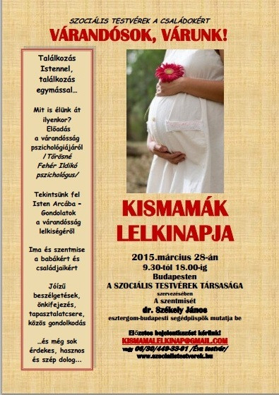 A következő kismamáknak rendezett lelkinap 2015. november 28-án lesz.