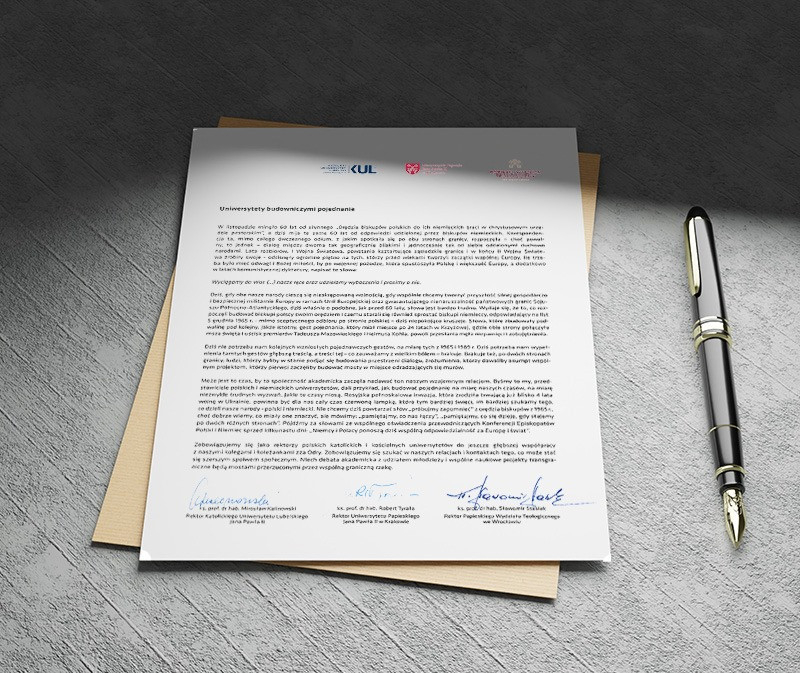 „Kapcsolatainkban és találkozásainkban arra törekszünk, ami szélesebb társadalmi kötelékké válhat. A fiatalokat is bevonó tudományos párbeszéd és a közös, határokon átívelő kutatási projektek legyenek hidak közös határfolyónk felett” – zárják levelüket a Lublini Katolikus Egyetem, a krakkói II. János Pál Pápai Egyetem és a wrocławi Pápai Hittudományi Kar rektorai.