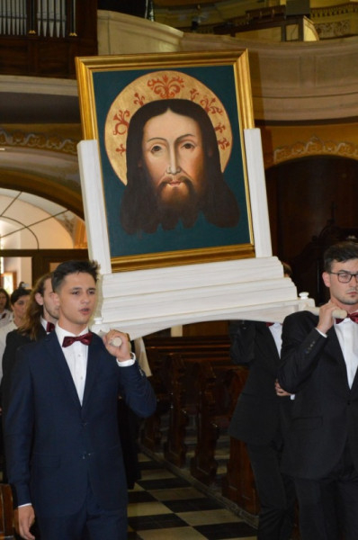 A kegyképhez, mely Jézusnak a színeváltozáskor mutatott arcát ábrázolja, több csodás gyógyulás is köthető. A másolatot az eredeti tervek szerint a templombúcsú szentmiséjét követő körmenetre hozták el, ám a körmenet előtti pillanatokban a kép eredetijét őrző bazilika plébánosa bejelentette, hogy a másolatot Kiskunhalasnak ajándékozzák. Az erről szóló hivatalos dokumentumokat pedig örömmel nyújtotta át Hozdik Zsolt tiszteletbeli kanonok, plébános, érseki tanácsos részére.