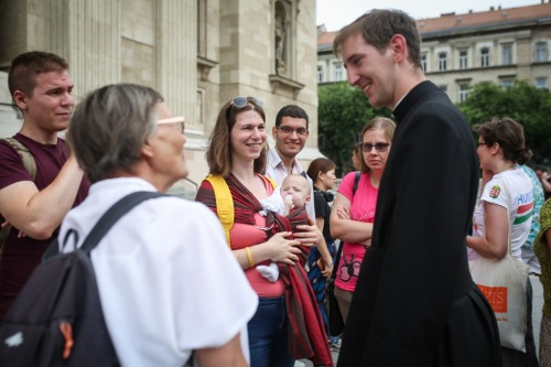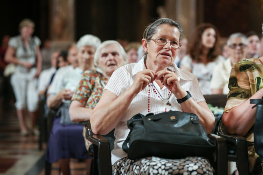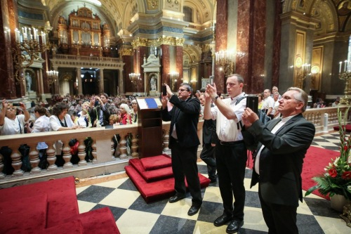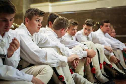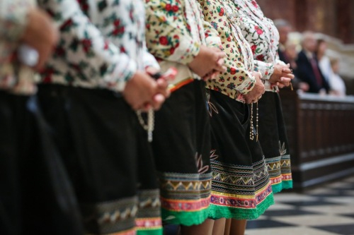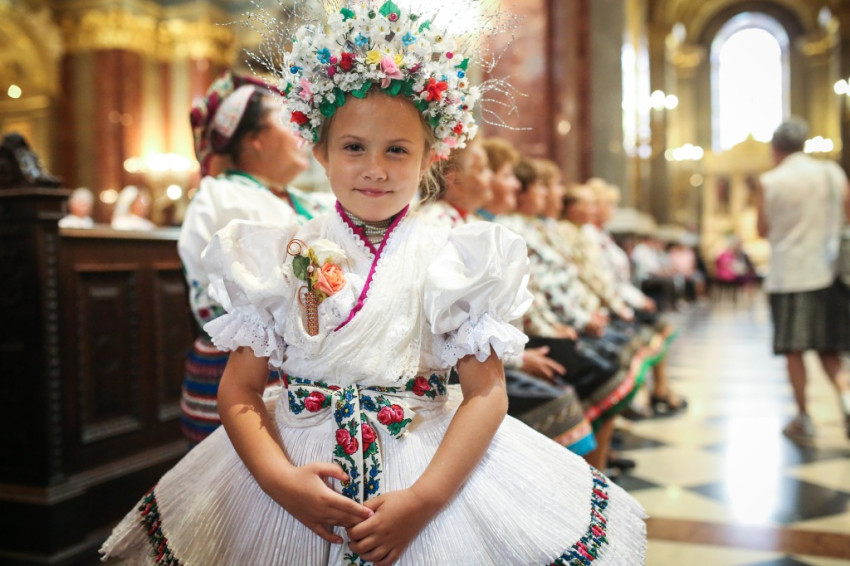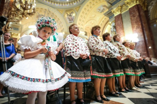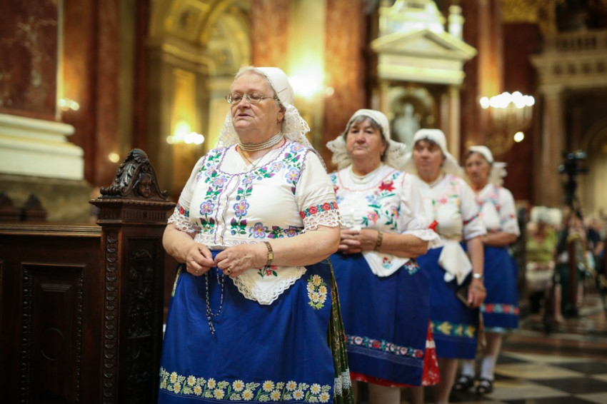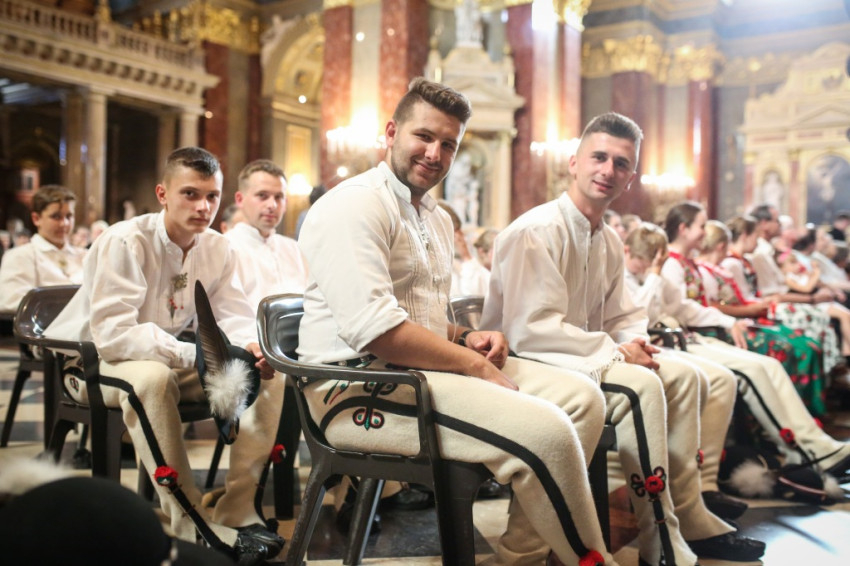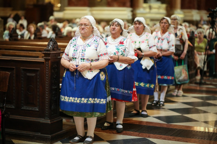 A bazilika már jóval a szentmise előtt zsúfolásig megtelt lengyel és magyar zarándokokkal, hazánkban élő lengyelekkel, hazájuk különböző tájegységeinek népviseletébe öltözött fiataljaival, akik imádságukkal, énekükkel köszöntötték a Szűzanyát.
