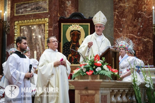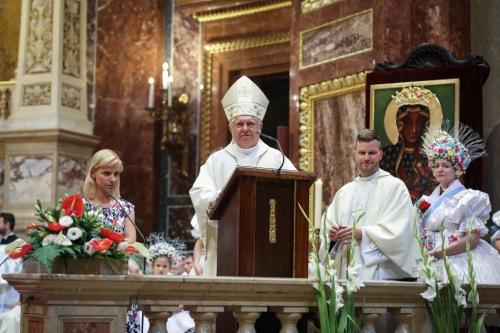 Amikor az asszisztencia és a koncelebráló papok után Erdő Péter bíboros, Wiesław Lechowicz püspök, a Lengyel Püspöki Konferencia lengyel emigráció lelkipásztori felügyeletéért felelős küldötte, valamint Snell György esztergom-budapesti segédpüspök az oltárhoz vonultak, a főpásztor köszöntötte az egyházi és világi méltóságokat, a megjelent lengyel és magyar zarándokok népes csoportját és a fiatalokat. Mint mondta, azért jöttek el ilyen sokan az ünnepre, hogy a częstochowai Szűzanya megkoronázásának részesei lehessenek. Azt a Szűzanyát ünnepeljük most – folytatta a bíboros –, aki a lengyeleknek és a magyaroknak is királynéja, ezért a két nép joggal érezheti egymást testvérének. Hozzátette: a koronázás elismerése annak, hogy Máriát mindkét nép királynőjének tekinti, aki nem csupán példaképünk, hanem lelki vezetőnk is. Éppen ezért mindkét nemzet nyugodtan rábízhatja gondjait, kérheti közbenjárását.
