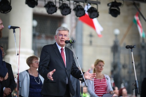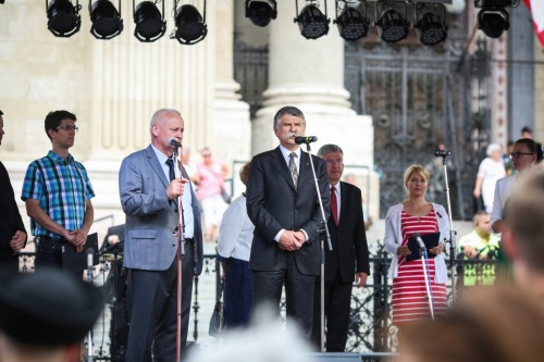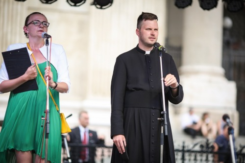 A lengyel és magyar lobogóval díszített bazilika előtti téren ezután Kövér László és Stanislaw Karczewski nyitotta meg a lengyel–magyar ifjúsági találkozót. A házelnök a két nép történelmi barátságáról beszélt. Mint mondta: már Szent László, akinek édesanyja lengyel hercegnő volt, saját személyében egyesítette a két nemzetet. A lovagkirály azért vált már életében Európa-szerte elismert uralkodóvá, mert megszilárdította a rendet Magyarországon, biztonságot adott az embereknek és megerősítette a kereszténységet. Stanislaw Karczewski köszöntőjében kiemelte a közös keresztény gyökerek fontosságát.