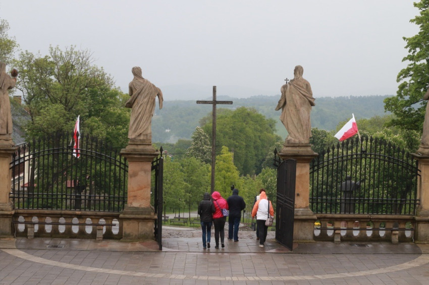 A szentmisét követően a zarándokok a keresztelőkút mellett imádkoztak, majd érseki áldással indultak tovább a következő állomásra, az UNESCO Kulturális és Természeti Világörökségek Listájára is felvett Kalwaria Zebrzydowskára. A ferencesek által gondozott kegyhely évszázadok óta Lengyelország déli régiójának egyik vallási központja. Története a 17. század elejére nyúlik vissza, amikor Mikołaj Zebrzydowski krakkói vajda itt alapított kolostort és Krisztus szenvedésének emlékére több kápolnát építtetett a jeruzsálemi Kálvária mintájára. A kolostor a Mária-szentéllyel késő barokk építmény rokokó elemekkel, kerengőkkel tarkítva, bent pedig modernista díszítésekkel, számos értékes festménnyel. Az együtteshez 42 kápolna tartozik a híres „kálvária ösvényekkel”. A zarándokok körbejárták a kolostort és a templomot, majd továbbindultak Krakkóba.