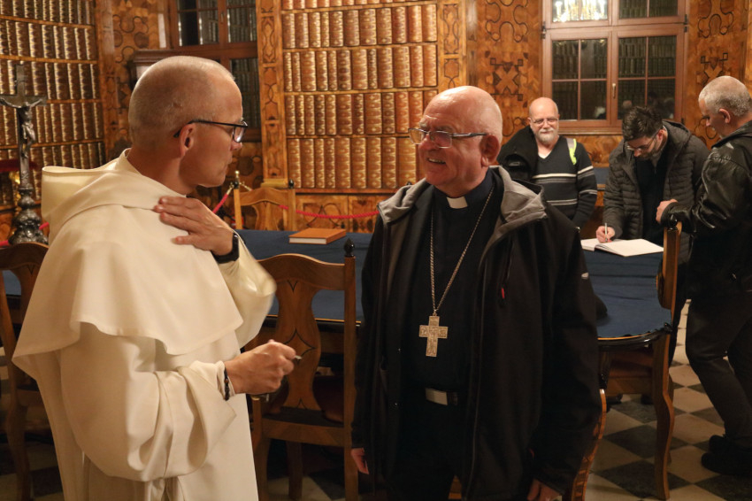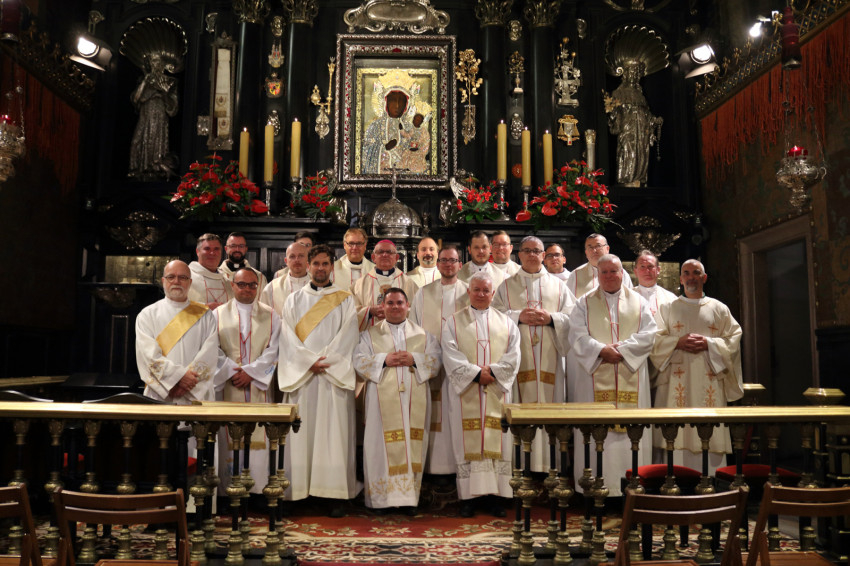 A Kaposvári Egyházmegye papsága október 23-án zarándoklatra indult Lengyelországba. Útközben a zsolozsmát végeztük el, valamint rózsafüzér imával készültünk első állomásunkra, a częstochowai Fekete Madonna kegyhelyére. Nagyjából tíz óra buszút után pillantottuk meg a Jasna Górát, vagyis a Fényes Hegyet. A szállásunk elfoglalását követően – mely a Szent Kristóf Zarándokház volt (körülbelül 20 percre a Jasna Górától) – szentmisét és vesperást imádkoztunk Varga László püspök vezetésével. A vacsora után meglátogattuk a bazilikát, ahol Adam Marian Waligóra pálos pap mutatta be nekünk a monostor könyvtárát. Marian Waligóra egyébiránt nagyon jól beszél magyarul – többek között a 2018-as csíksomlyói búcsú szónoka is ő volt. A könyvtár megtekintése után részt vettünk az úgynevezett „Apel Jasnagórski” – Mária-köszöntő imádságon, melyen a tized rózsafüzért a kaposvári atyák imádkozták elő magyar nyelven, majd együtt adott áldást László püspök a zarándok püspökökkel.