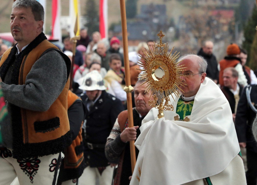 Az úrnapja körmenettel történő megünneplése Lengyelországban a 14. századra nyúlik vissza, az Eucharisztia ilyen jellegű tisztelete német városokból érkezett. A csütörtök délelőtti ünnepélyes plébániai szentmisék után indultak a processziók, melyek élén Krisztus keresztjét követte a helyi plébános vagy káplán, aki baldachin alatt vitte monstranciában az Oltáriszentséget. Az éneklő és imádkozó hívek valójában az előttük haladó Jézust követték, akitől azt kérték, hogy jelenlétével áldja meg városaik és falvaik utcáit, házaikat, földjeiket és gazdaságaikat.