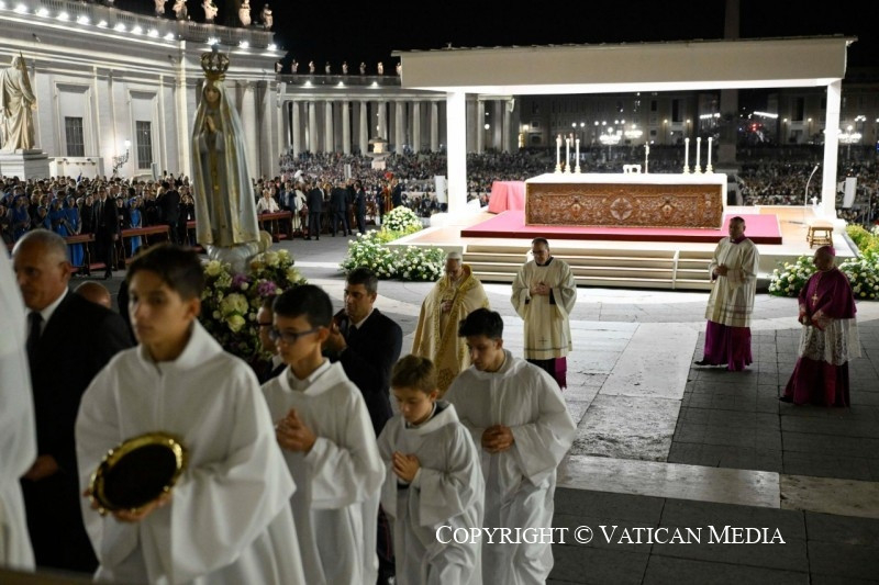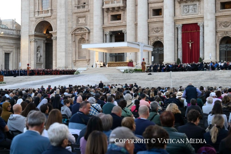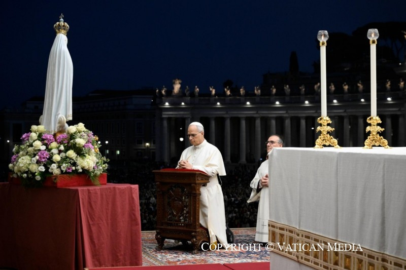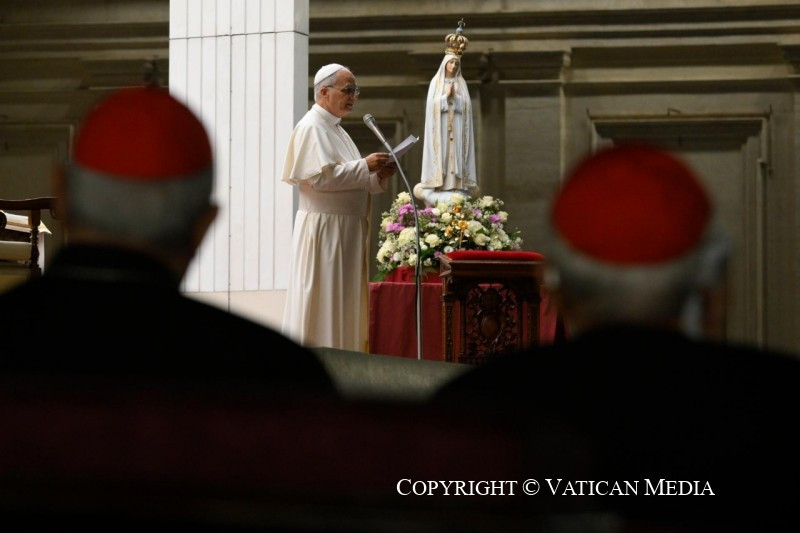 És Jézus szavai közül, amelyeket nem akarunk meghiúsulni hagyni, ezen a békéért tartott imavirrasztáson ma különösen visszhangzik egy: az, amelyet Jézus a Getszemáni-kertben intézett Péterhez: „Tedd vissza hüvelyébe kardodat!” (vö. Jn 18,11). Tedd le a fegyvert – előbb a szívedből, aztán a kezedből! Amint más alkalmakkor is említettem, a béke fegyvertelen és lefegyverző. Nem elrettentés, hanem testvériség, nem ultimátum, hanem párbeszéd. Nem ellenség fölött aratott győzelem gyümölcseként születik, hanem az igazságosság és a bátor megbocsátás magvetésének gyümölcseként.