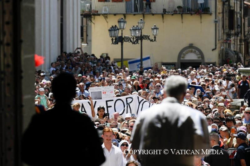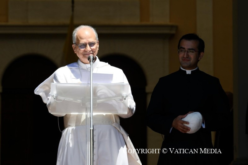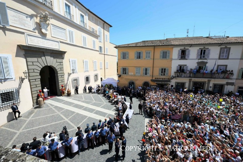 Ma délelőtt az albanói székesegyházban mutattam be a szentmisét. Ez jelentős alkalma volt az egyházmegyei közösséggel való találkozásnak és az egyházi közösség megélésének. Köszönetet mondok a jelen lévő Viva püspök úrnak és mindazoknak, akik ennek a szép szertartásnak a megszervezésén dolgoztak. Minden jót kívánok az egész egyházmegyei közösségnek!