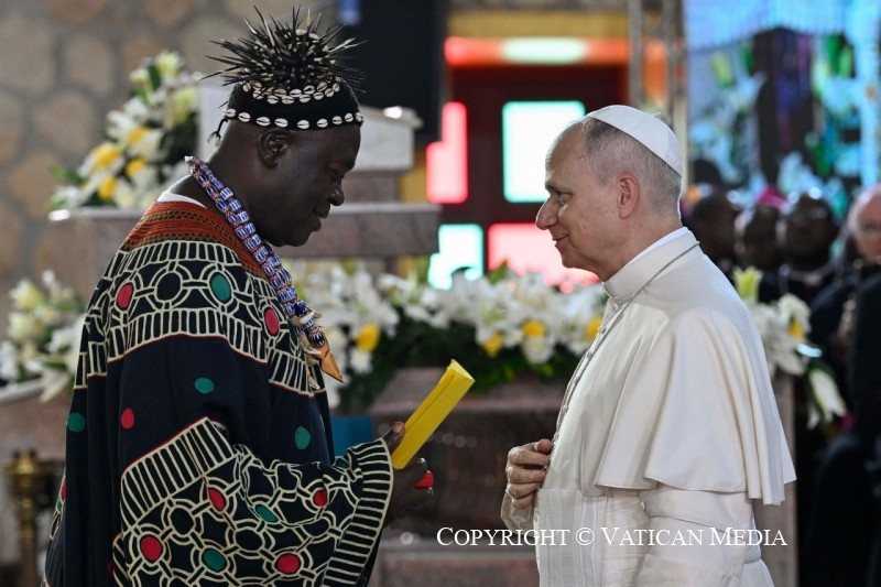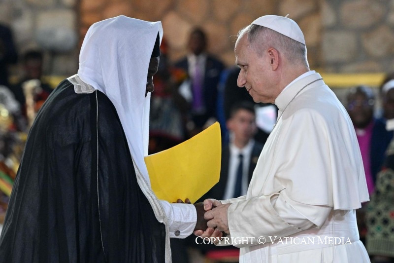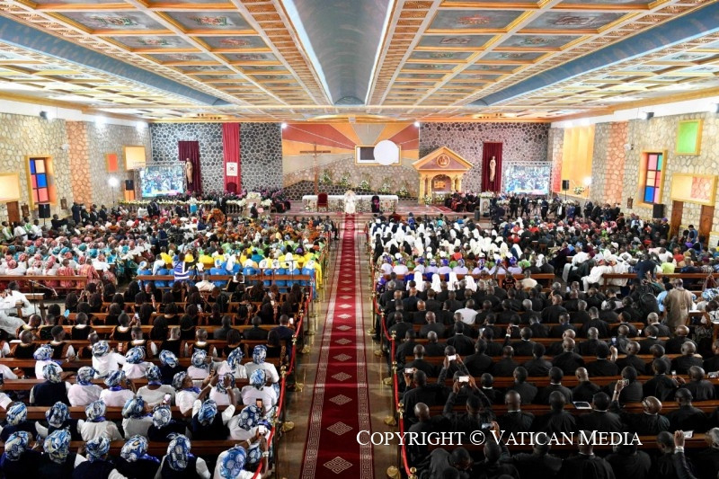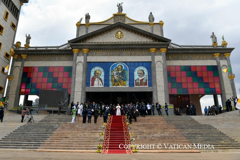 Ezt követően hangzott el a pápa beszéde. A találkozó végén a bamendai közösség képviselőinek kíséretében a székesegyház bejáratánál a pápa a béke jeléül galambokat engedett szabadon.