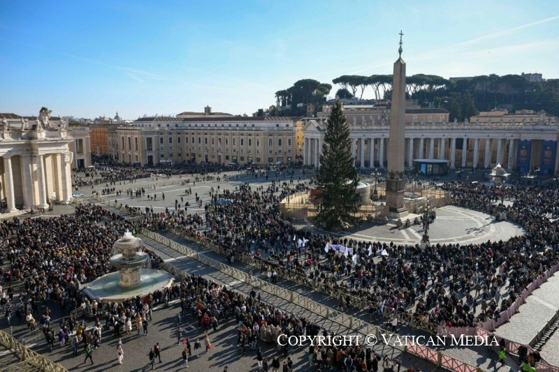 Szeretettel köszöntelek mindnyájatokat, rómaiak, Olaszországból és a világ más tájairól érkezett zarándokok. Külön is köszöntöm a spanyolországi Molina de Segura híveit, a „Firenze in Armonia” kulturális egyesületet és a Szeplőtelen Szűzanya-plébánia fiataljait. Örömmel adom áldásomat a Rocca di Papa-i csoportra és a fáklyára, amellyel meggyújtják majd a karácsonyi csillagot annak a szép kisvárosnak az erődjén.