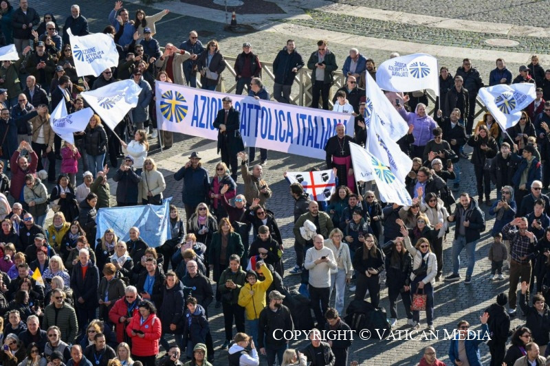Üdvözletemet küldöm az Olasz Katolikus Akció tagjainak, akik ma, a plébániai közösségekben, a csatlakozás napját ünneplik. Mindnyájatoknak gyümölcsöző tanulást és apostoli tevékenységet kívánok, hogy hiteles tanúi legyetek az evangéliumnak.