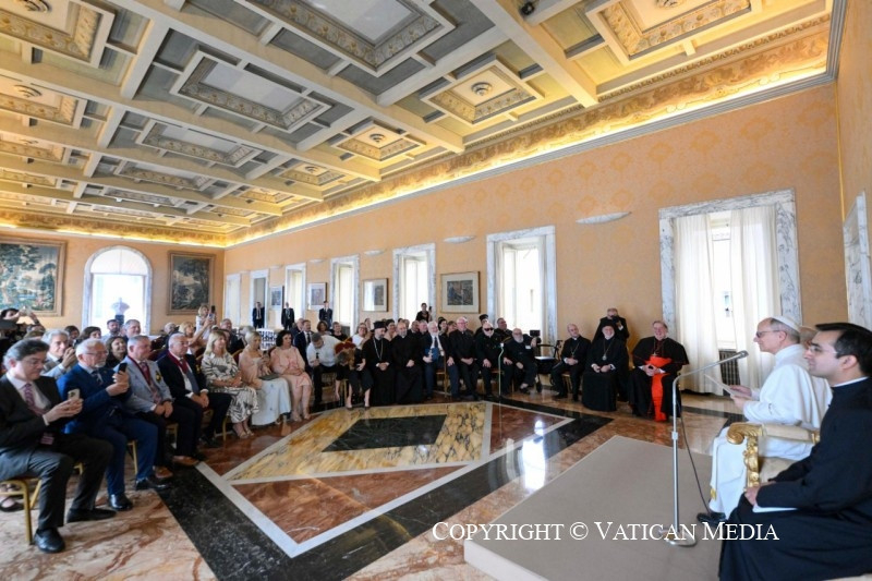 Castel Gandolfó-i nyári rezidenciáján a pápa találkozott az Amerikai Egyesült Államokból érkezett ortodox–katolikus ökumenikus zarándoklat résztvevőivel. A hívek a Péter és Pál apostolhoz kötődő római, valamint az András apostolhoz kötődő konstantinápolyi helyszínekre utaznak, és ez a zarándoklat az I. Niceai Zsinat 1700. évfordulójának megünneplése szempontjából is jelentős.