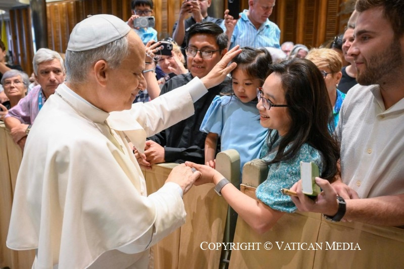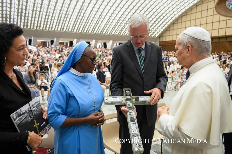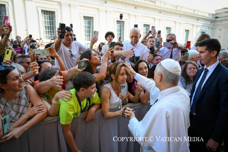 Azt hiszem, követtétek az egész kihallgatást. Köszönöm jelenléteteket és türelmeteket! Ez is Isten Lelke jelenlétének a jele. Az életben oly sokszor szeretnénk azonnal választ kapni, azonnali megoldást kapni, de Isten valamiért megvárakoztat bennünket, és sok mindent kell megtanulnunk. De, ahogy maga Jézus is tanítja, meg kell lennie bennünk annak a bizalomnak, amely tudatja velünk, hogy Isten fiai és leányai vagyunk, és hogy Isten mindig megadja kegyelmét nekünk. Nem mindig veszi el a fájdalmunkat, nem mindig veszi el a szenvedésünket, de azt mondja, hogy közel van hozzánk. Isten mindig velünk van, és meg kell újítanunk ezt a hitet. Isten mindig velünk van, s ezért vagyunk boldogok.