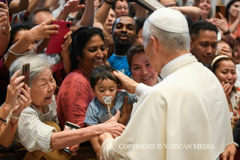 A Szentatya más nyelveken is összefoglalta katekézisét, üdvözölte a jelen lévő híveket. Az általános kihallgatás a Miatyánk elimádkozásával és apostoli áldással zárult, de ezt követően a pápa még köszöntötte a termen kívül várakozókat, és átment a Szent Péter-bazilikába is üdvözölni azokat, akik nem fértek be a VI. Pál terembe, és a kihallgatást kivetítőn követték.