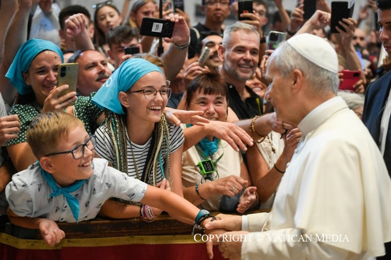 Jó napot kívánok ismét! Köszönöm türelmeteket! Köszönöm mindenkinek a türelmét, és azt, hogy eljöttetek, ami nagyon szép jele a hitben való egységünknek. Mindannyian meg akarjuk újítani a hitünket. Ma Szent Mónika ünnepe van, holnap Szent Ágostoné, aki arra biztatott mindannyiunkat, hogy mindig egységben legyünk Krisztusban. Éljük meg ezt a hitet zarándoklatunk során!