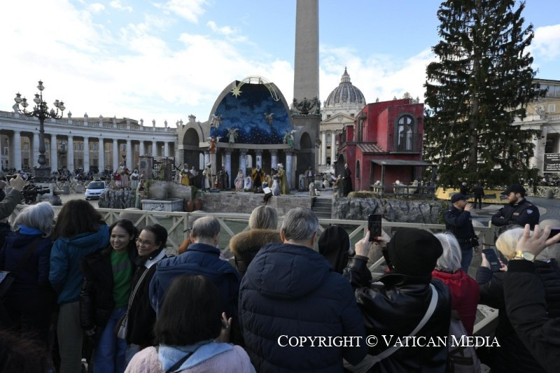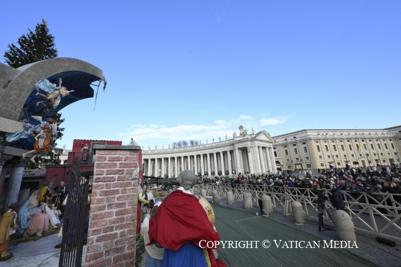 Kedves barátaim, Isten Fiának születése közöttünk Isten gyermekeinek életére hív bennünket: ezt olyan vonzerővel teszi lehetővé, amelyet Betlehem éjszakájától kezdve megtapasztaltak az olyan alázatos emberek, mint Mária, József és a pásztorok. De
