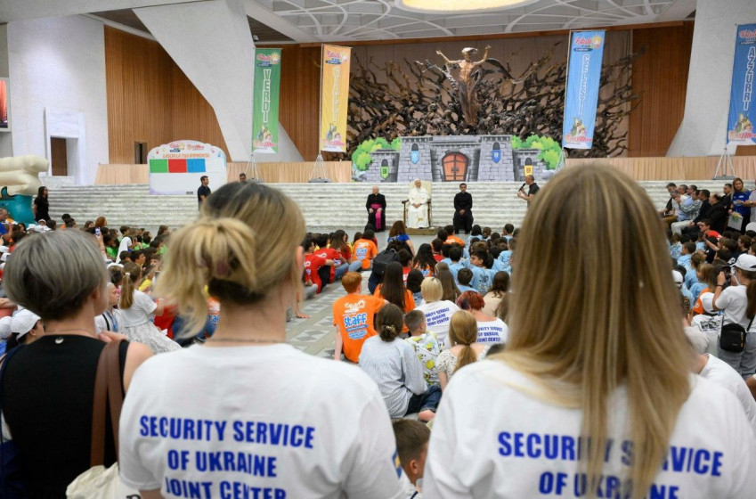 A gyermekek és a fiatalok ajándékokat vittek a pápának: voltak köztük olyan tárgyak is, amelyeket maguk készítettek a nyári táborban. Az ukrán gyerekek és fiatalok pedig rajzokkal és saját alkotásaikkal kedveskedtek neki.