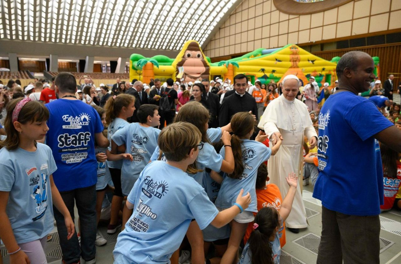 Az animátorok fogadták a pápát, aki elbeszélgetett a gyermekekkel, és válaszolt néhány kérdésükre. Leó pápa mesélt gyermekkoráról, a szentmisén való részvételről, ahol fiatalokkal, barátokkal, de legfőképp „a legjobb baráttal, Jézussal” találkozott.