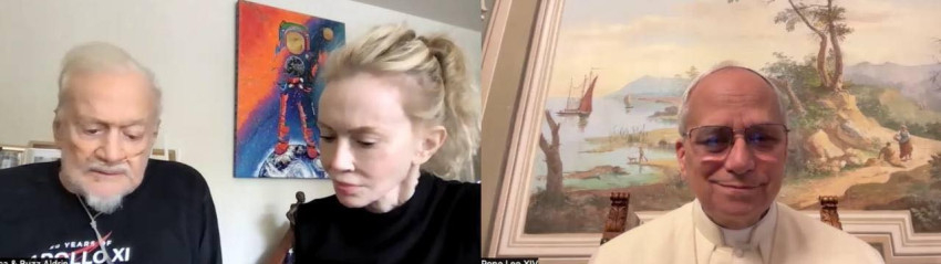 A sajtóközpont tájékoztatása szerint a 8. zsoltár szavaival együtt elmélkedtek a teremtés misztériumáról, annak nagyszerűségéről és törékenységéről. Mielőtt befejezték a beszélgetést, a pápa megáldotta az űrhajóst, a családját és a munkatársait. Az X-en Aldrin meghatottan nyilatkozott arról, hogy megkapta XIV. Leó áldását. „Imádkoztunk – írta – az egész emberiség jó egészségéért, hosszú életéért és jólétéért.”