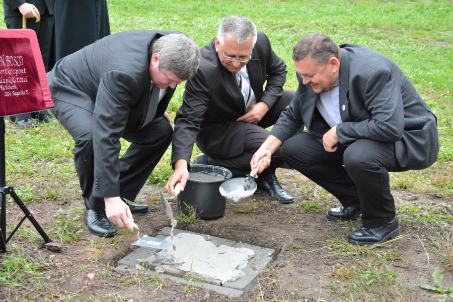 Az alapkövet Ábrahám Béla szalézi tartományfőnök, Tállai András, a Nemzetgazdasági Minisztérium államtitkára és Demeter Zoltán képviselő helyezte el, és Vitális Gábor plébános áldotta meg a Szent Család-templom melletti telken.