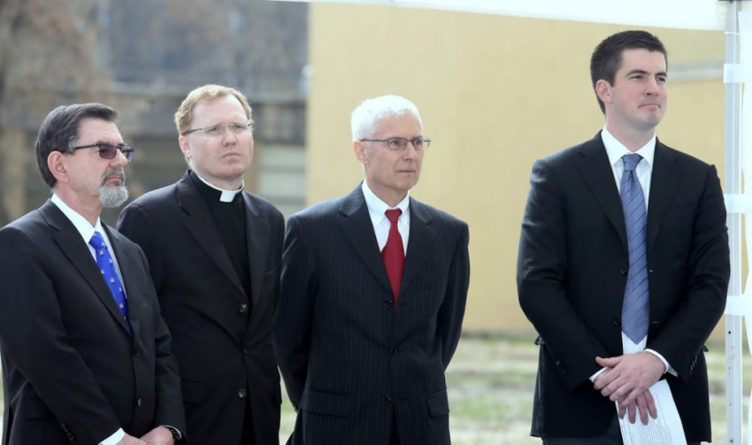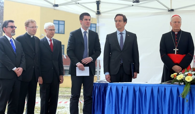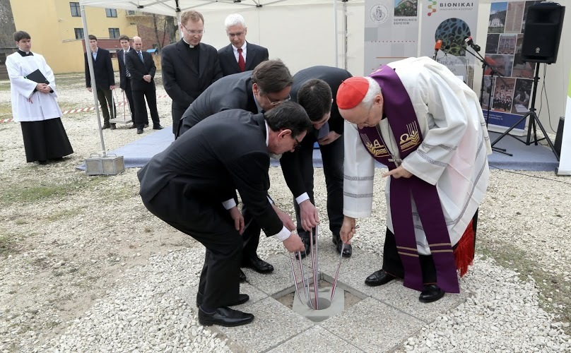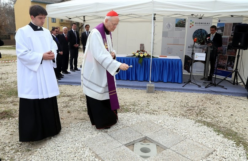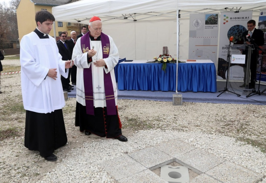 A köszöntőbeszédeket követően sor került az alapkőletételi okirat felolvasására és aláírására, majd Erdő Péter áldásával elhelyezték a kézjegyekkel ellátott dokumentumot a leendő központ alapjában.