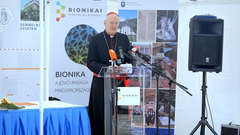 Az alapkő-letételi ünnepséget az egybegyűltek a tavaly elhunyt Roska Tamás professzorra való emlékezéssel kezdték, aki a Pázmány Péter Katolikus Egyetem Információs Technológiai Karának alapító dékánja volt, valamint nevéhez fűződik a Bionikai Innovációs Központ (BIK) megálmodása is.