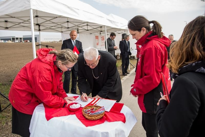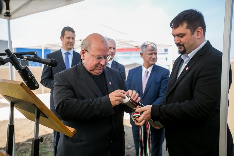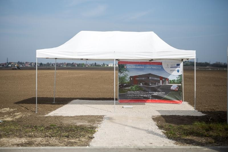 A logisztikai központ alapkövét Spányi Antal székesfehérvári megyéspüspök és Écsy Gábor, a Katolikus Karitász országos igazgatója mellett Cser-Palkovics András, Székesfehérvár polgármestere; Soltész Miklós egyházi és nemzetiségi kapcsolatokért felelős államtitkár; Törő Gábor országgyűlési képviselő és Fülöp Attila szociális ügyekért és társadalmi felzárkózásért felelős államtitkár tette le a székesfehérvári Alba Ipari Zónában.