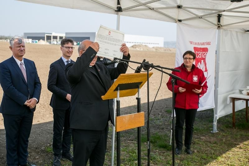 Cser-Palkovics András polgármester arról beszélt, hogy Székesfehérvár egyik ipari parkjában a sok közepes magyar vállalkozás mellett jól megfér majd egy szociális tevékenységet folytató civil szervezethez kapcsolódó logisztikai központ. A városvezető rámutatott arra az összefüggésre is, hogy a cégek által befizetett helyi adókból tudta Székesfehérvár 21 millió forinttal támogatni a Katolikus Karitászt a földterület megvásárlásában.